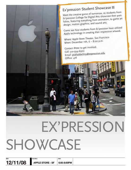 I'll be showing off my music & post reel at the Apple Store theater in San Francisco this Thursday around 6pm. Come out! We'll grab food afterwards and cry about the economy.
