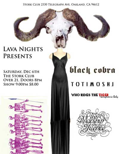 My band is opening for the one and only Black Cobra Saturday, Dec 6 @ the Stork Club. Hope you guys can make it.