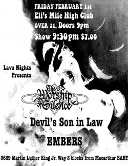 Come out and enjoy our loudness. The Worship of Silence plays with the some of the best in Bay Area doom... on a MONDAY! So DOOOOOOM.