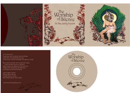 It's been 18 months since we stepped into Ear Hammer studios to record this album and finally we have a packaged product. The album is called In the Early Hours. It contains three 15 minute songs, "Drugs", "The Paler Parts of You", and "Trying to Breath through your eyes". You can preview the songs in the audio player above or at our web site, theworshipofsilence.com.